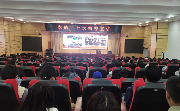 崔永明以“不懈奋斗开启新征程”为题,从参加党的二十大期间的所见所闻、党的二十大报告“金句”以及党的二十大精神学习感悟三个方面进行了精彩宣讲。她结合党的二十大,谈到了新时代十年的伟大成就,也分享了作为一名基层党代表和社区干部对于“江山就是人民人民就是江山”的深刻认识。崔永明同志举案例、讲体会、谈感悟,不仅接地气,而且极具吸引力、说服力、感染力,引起在场师生的强烈共鸣。最后她勉励青年学生要坚定不移听党话、跟党走,怀抱梦想又脚踏实地,敢想敢为又善作善成,立志做有理想、有担当、能吃苦、肯奋斗的新时代好青年。